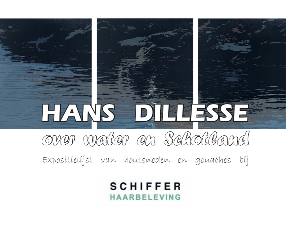 Natuurlijk mag in ons 50 jarig jubileumjaar Hans Dillesse niet ontbreken. Dit keer staan zijn recente houtsnedes "Over water en Schotland" centraal, aangevuld met 8 kleine ingelijste "Schotland" gouaches. In de wachthoek is een mooie door Hans verzorgde brochure aanwezig. Hierin geeft hij een inkijk in de prachtige reductie houtsnede techniek. Laat je betoveren door water, beweging en reflecties..... en natuurlijk Schotland.